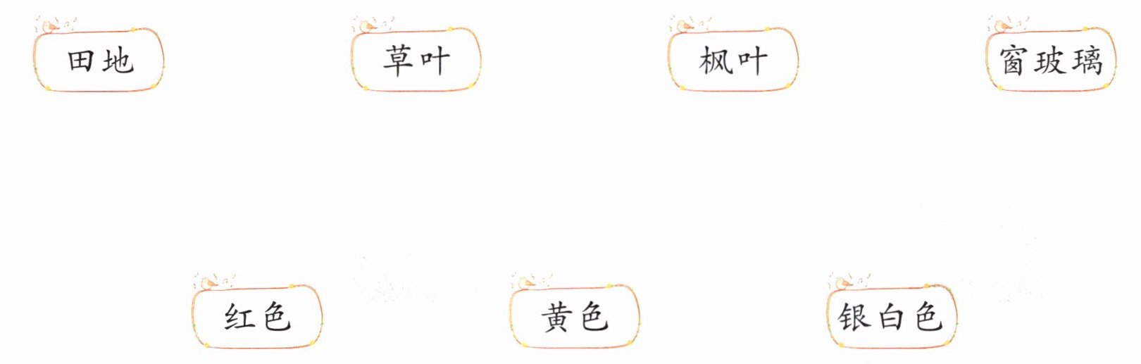 2. 你知道霜把下列事物都涂成什么颜色了吗? 连一连。