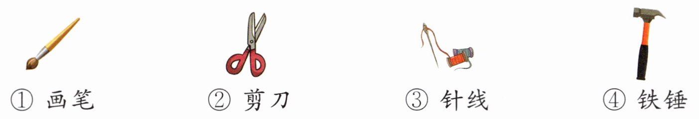 霜的工具都在一只小箱子里,是些什么东西呢? 一个颜色盒子,大大小小的画笔,还有剪刀和铁锤。