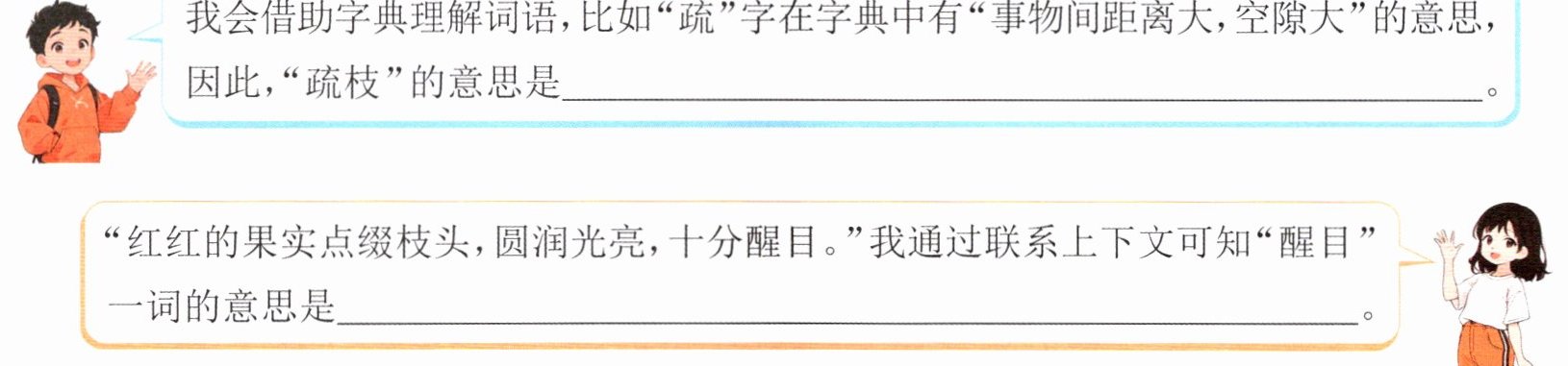 2.(阅读要素)小语和小文尝试用学过的方法理解文中词语,请帮忙补全对话。