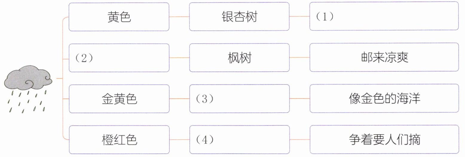 1.(思维导图)读了这段话,小语给秋天的雨做了一幅思维导图,请你把它补充完整。