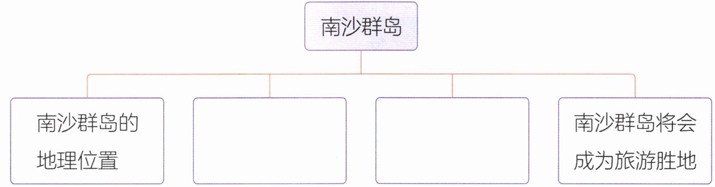1.(阅读要素)文章从哪些方面介绍了南沙群岛?请结合第②自然段的关键句补全下图。