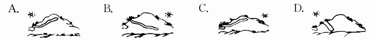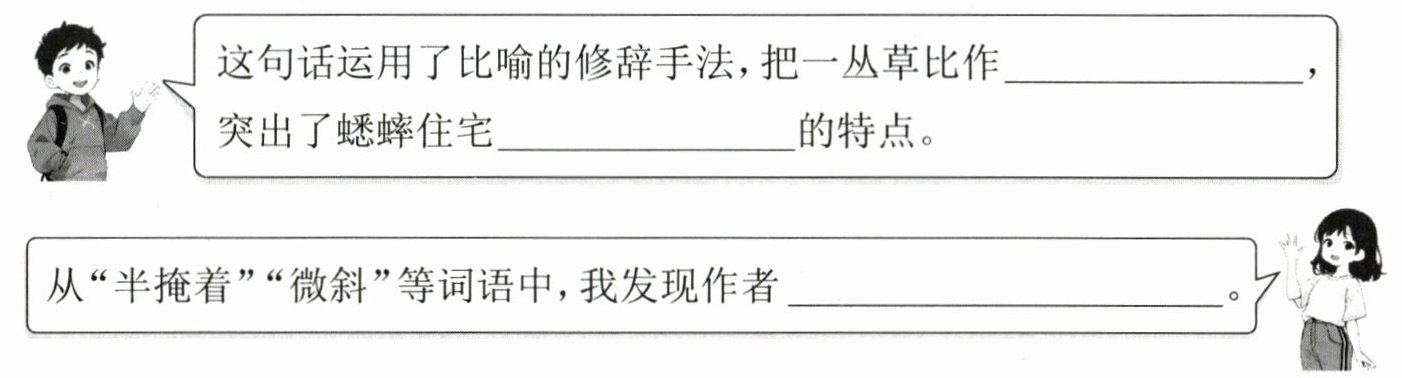 1. A 解析:根据材料一第①自然段可知,蟋蟀的住宅具有“朝着阳光”“即使有骤雨,这里也立刻就会干的”“顺着地势弯弯曲曲”“最多九寸深”,并且出口“总有一丛草”等特点。B项不符合“顺着地势弯弯曲曲”;C项背着阳光;D项隧道向下延展,有雨容易积水。