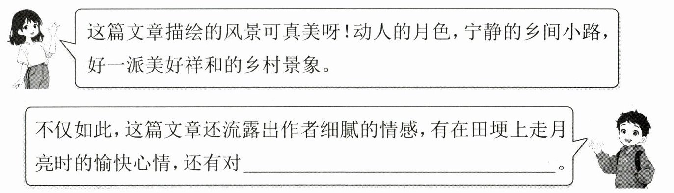 不仅如此,这篇文章还流露出作者细腻的情感,有在田埂上走月亮时的愉快心情,还有对