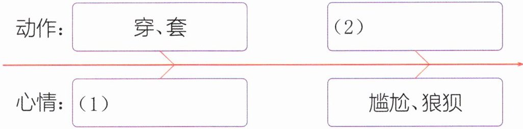 1. (1)紧张 (2)弯下、爬、叫 2. A 解析:“我”扮演大老虎被全场观众笑,觉得自己表演不成功,感到窘迫和紧张,所以当演出结束,“我”觉得解脱了。 3. “我”笨拙的表演显得老虎很窝囊,把老师和同学逗乐了。 当时“我”很紧张,只关注观众的表现,而把自己的表现忘记了。 4. 示例:不窝囊。因为“我”的表演给大家带来了快乐,这是非常值得肯定的。