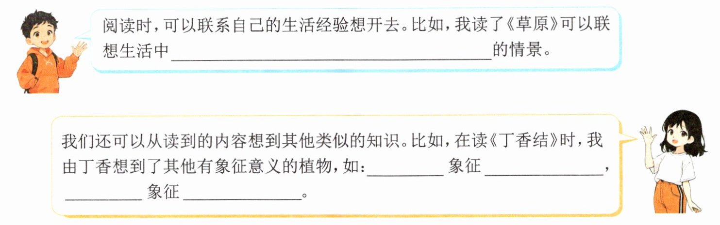 一、同学们正举行关于“阅读时如何从所读内容想开去”的讨论会,请完善相关内容。
