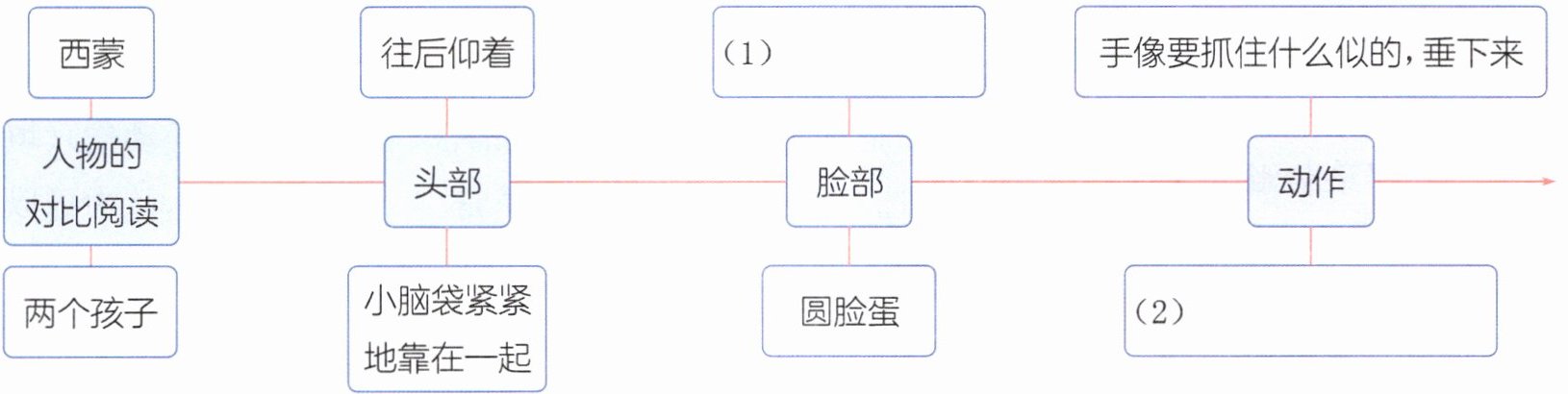 2. (思维导图)从“对比阅读”的角度思考,仔细阅读选段二,抓住人物描写中的关键词句,细细品读,完成填空。
