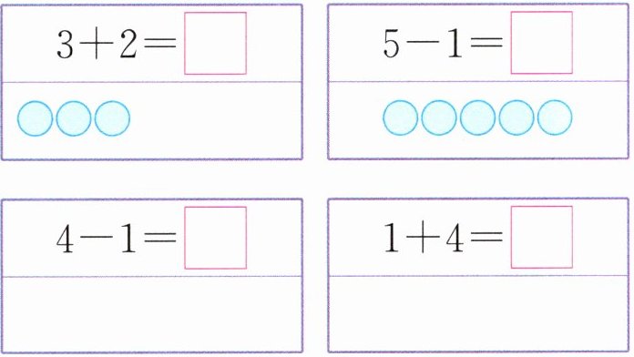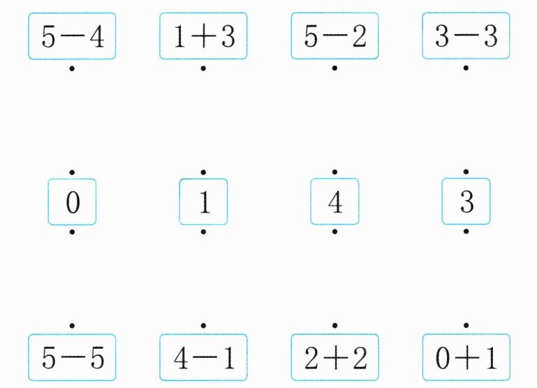 7. $0 + 5 = 1 + 4 = 2 + 3$ $5 - 4 = 3 - 2 = 1 - 0$ (或 $5 - 2 = 4 - 1 = 3 - 0$)