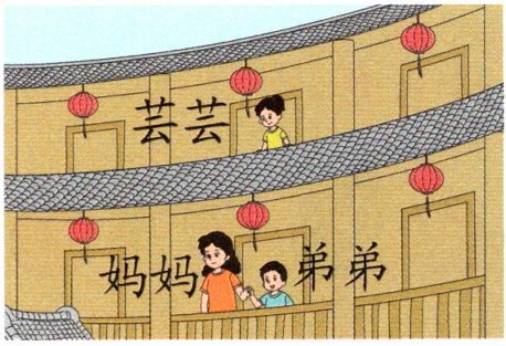 芸芸在弟弟的(上 下)面,妈妈牵着弟弟的(左 右)手,如果爸爸赶上来,牵起弟弟的另一只手,这时爸爸在弟弟的(左 右)边。(圈一圈)