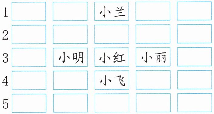(1)第3行从左数起的第4名同学是( ),小兰后面的第3名同学是( )。