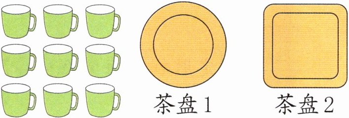 2. 将9个茶杯分别放在两个茶盘上,可以怎么放?(每个茶盘上都要放,填写下表,表中单位:个)