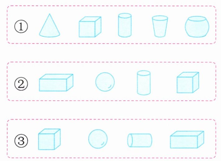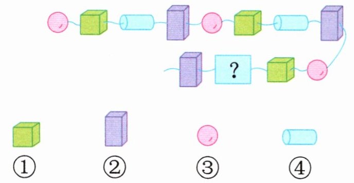 ,像这样每4个为一组,重复排列。题中要求正方体后面的一个图形,根据排列规律,正方体后面的一个图形是圆柱。