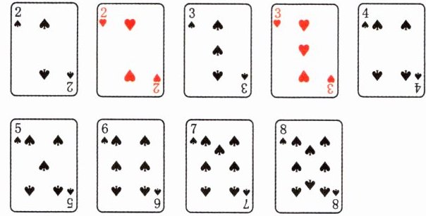 2.(易错题)准备 9 张扑克牌(从 A 到 9,A 表示 1),下面是 2 张翻开的扑克牌,再翻哪两张能使扑克牌上的数相加正好等于 10?
