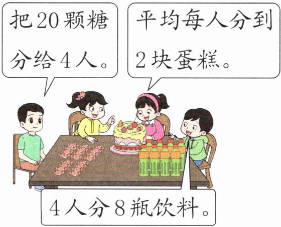 (3) 答案不唯一,如平均每人分到几瓶饮料?$8 ÷ 4 = 2$ (瓶)