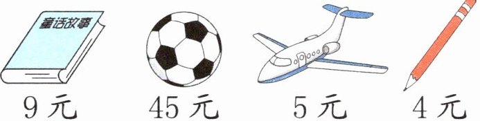 (4)答案不唯一,如买一个足球的钱可以买几架玩具飞机? $45÷5=9$(架)