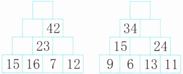 解析:根据前两幅图的规律发现,每幅图中上面的数等于左边与右边两个数的和,下面的数等于上面与右边两个数的和。