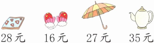 雨伞和水壶:$27 + 35 = 62$(元)。