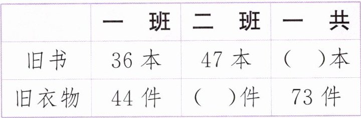 7. 学校组织了一场捐赠旧书和旧衣物的活动,二年级一班和二班的捐赠情况如下表。