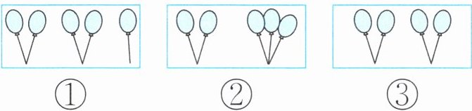 图①中,$5$个气球,每$2$个一束,可以分成$2$束,还剩$1$个,符合$5÷2 = 2\cdots\cdots1$。