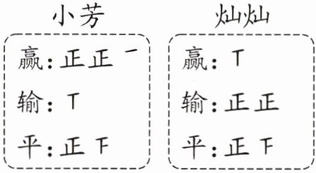 小芳的记录出错了 理由:根据她的记录,一共比赛了11+2+8=21(场),实际只比赛了20场。结合灿灿的记录可知,小芳赢的场数多记录了1。