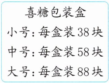(2)李阿姨买了3个中号包装盒和1个小号包装盒,正好够装她买的喜糖。她一共买了多少块喜糖?