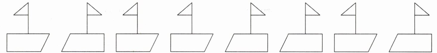 1. 把平移后能够互相重合的小船涂上相同的颜色。