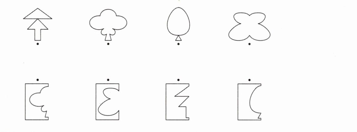 2. 下面的图案分别是从哪张纸上剪下来的?连一连。
