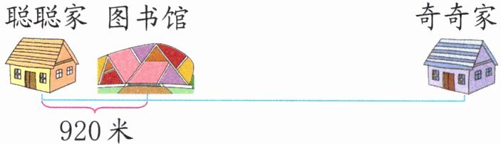 解析: 聪聪到图书馆后返回家拿借阅证, 再从家到图书馆, 走了 3 个 920 米。奇奇家到图书馆的距离是聪聪家到图书馆距离的 3 倍, 也是 3 个 920 米, 据此解答即可。