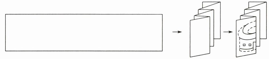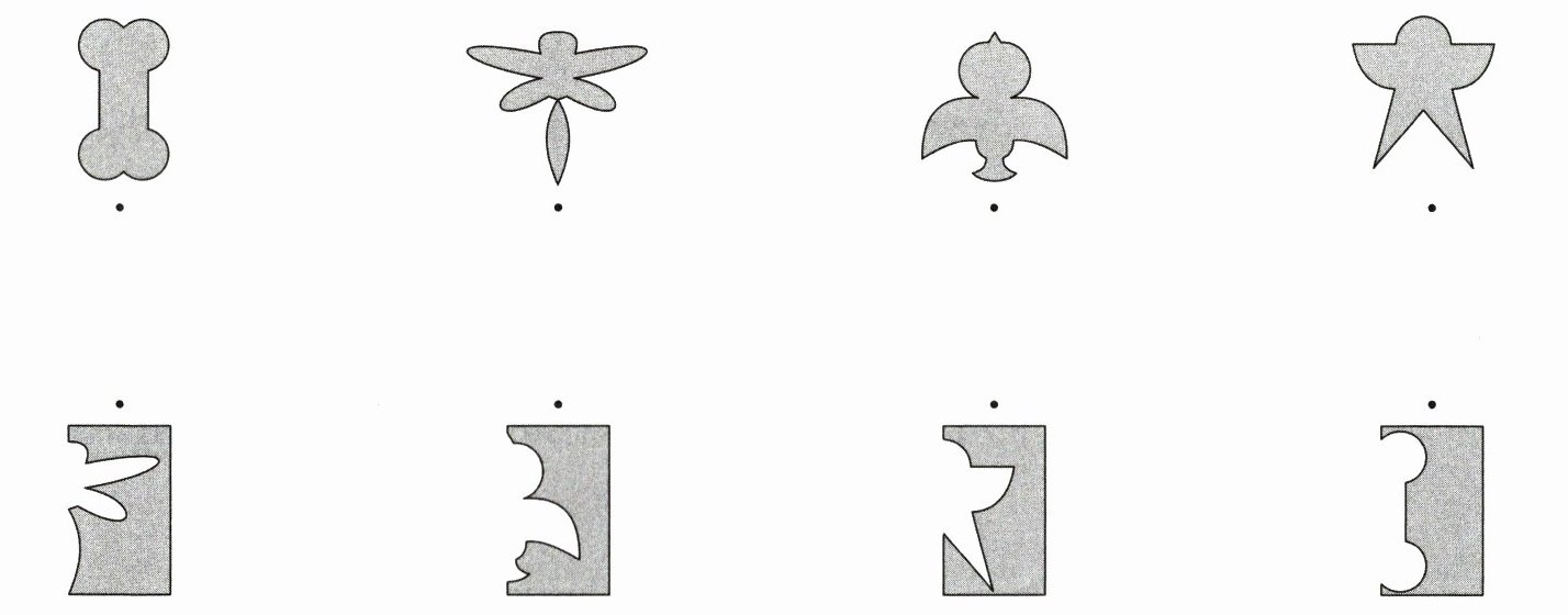 1. 下面的图案分别是从哪张纸上剪下来的? 用线连一连。(8分)