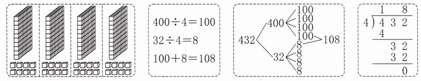 1. 新趋势 算理理解 下面计算$432÷4$的方法中,正确的有(