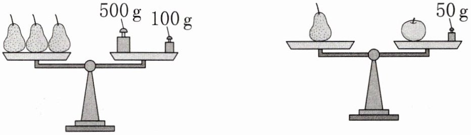 答案不唯一,如问题一:每个梨多少克?500+100=600(g) 600÷3=200(g)问题二:每个苹果多少克?200-50=150(g)