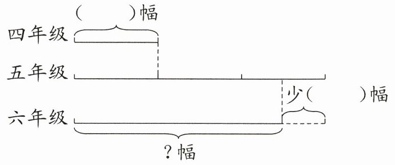 4. 新趋势 创新应用 学校举办绘画展,四年级同学展出了35幅作品,五年级同学展出的作品是四年级的3倍,六年级同学展出的作品比五年级少18幅。六年级同学展出多少幅作品?(先将线段图补充完整,再列式解答)(7分)