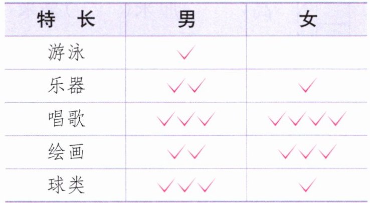 )的人数最少。特长是唱歌的比特长是绘画的多(2