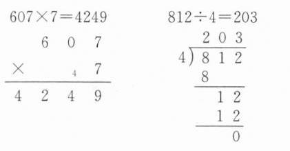 $607× 7$ $812÷ 4$ ☆$398÷ 3$