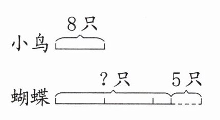 解析:题目考查的是“倍的认识”相关的知识点,需要根据图中内容列出算式并计算。由于题目中已给出算式$8×3 - 5$,先计算乘法$8×3 = 24$,再计算减法$24 - 5 = 19$。