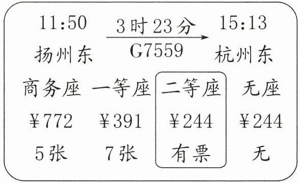 2. 新情境 生活应用 丽丽和爸爸、妈妈去杭州旅游,妈妈在手机上预订了3张从扬州东开往杭州东的二等座车票。