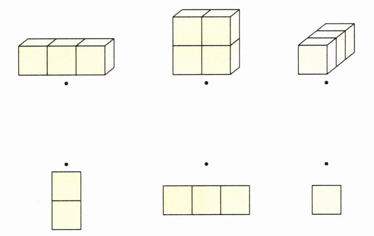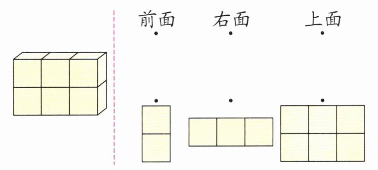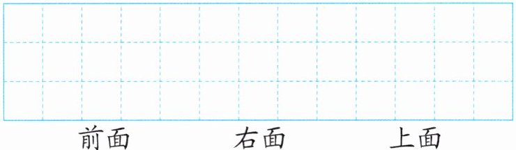 4. (苏州真题)用3个同样大的正方体摆成一个大长方体。在方格纸上画出从前面、右面和上面看到的图形。