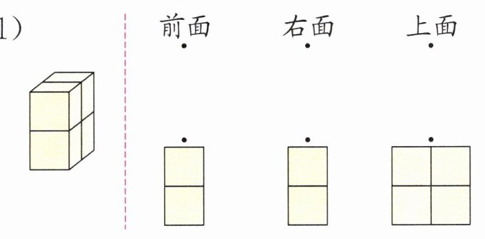 1. (几何直观)下面的图形分别是从长方体的哪一面看到的? (填“前”“右”或“上”)