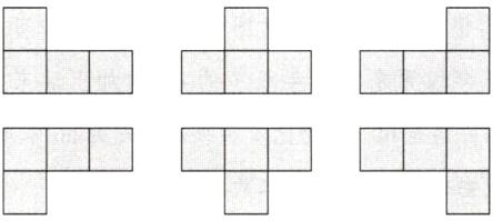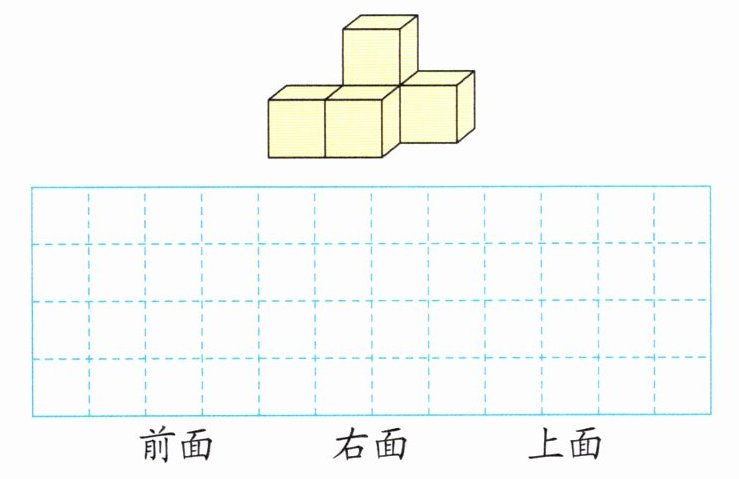 3. (苏州真题)用5个同样大的正方体摆出下面的物体,从前面、右面和上面看到的分别是什么图形?在方格纸上画一画。
