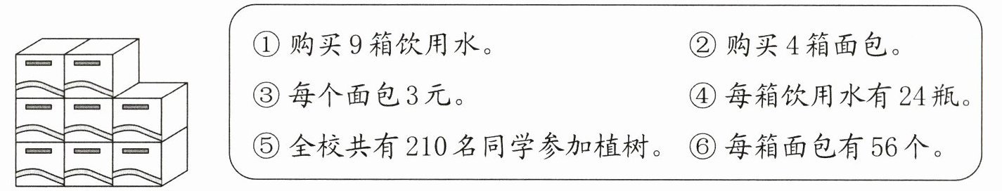 5. 新趋势 创新应用 实验小学在植树节当天给同学们准备了饮用水和面包。