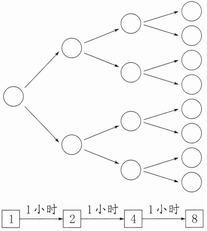 $ \begin{matrix} □{1} & \xrightarrow{1小时} & □{2} & \xrightarrow{1小时} & □{4} & \xrightarrow{1小时} & □{8} \end{matrix} $