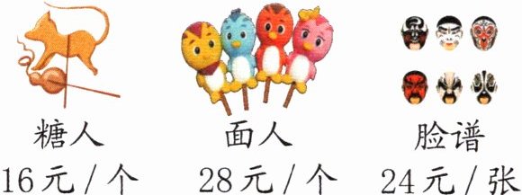 5. (传统文化)吹糖人、捏面人和脸谱都是我国传统民间手工艺品,王老师带了336元去买一些手工艺品。