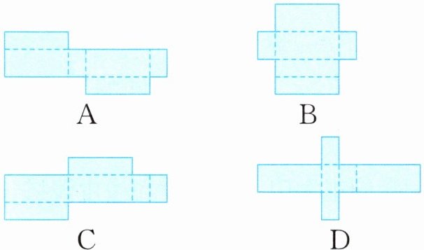 (2)下面各图中,能沿虚线折成长方体的是(