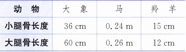 5.(生物百科)有关资料显示,动物的小腿骨与大腿骨长度的比值越大,这种动物跑得越快。下表是三种动物的小腿骨与大腿骨长度的参考数值,试比较哪种动物跑得最快。