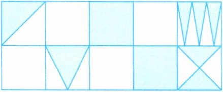 5. $\frac{2}{3}$ 60 解析:根据题图,可知第一行第一个小正方形中的涂色部分占该小正方形的$\frac{1}{2}$,第三个小正方形中的涂色部分是一个小正方形,第五个小正方形中的涂色部分占该小正方形的$\frac{1}{2}$;第二行第二个小正方形中的涂色部分占该小正方形的$\frac{1}{2}$,第四个小正方形中的涂色部分是一个小正方形,第五个小正方形中的涂色部分占该小正方形的$\frac{1}{2}$。由此即可求出涂色部分相当于$\frac{1}{2}+1+\frac{1}{2}+\frac{1}{2}+1+\frac{1}{2}=4$(个)小正方形,空白部分就相当于$10-4=6$(个)小正方形,求涂色部分是空白部分的几分之几,列式计算为$4÷6=\frac{2}{3}$;求空白部分占整个图形的百分之几,用空白部分相当于的小正方形的个数除以整个图形的小正方形的个数,也就是$6÷10=\frac{6}{10}=\frac{60}{100}$,再将$\frac{60}{100}$改写成60%。