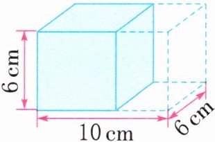 6. 把一个长10cm、宽6cm、高6cm的长方体木块削成一个体积最大的正方体木块(如图),削去部分的体积是多少立方厘米?