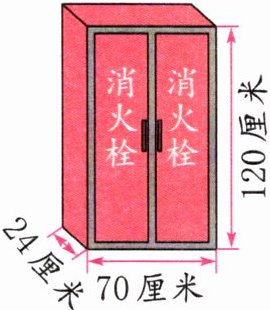 3. (社会生活)你知道吗? 消火栓箱有不同的型号,尺寸也不同。萱萱了解到自己家附近的消火栓箱是双开门式的(如图),这个消火栓箱的体积是多少立方厘米?
