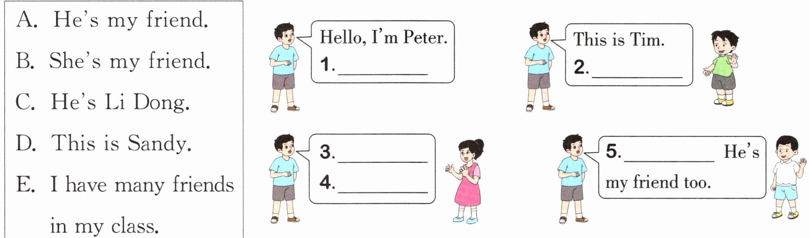) 1. Ben has(有) 4 friends in this picture(图片).(