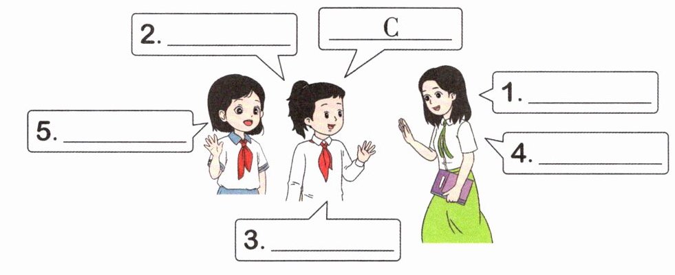 四、学生们正在和新来的李老师打招呼,请帮他们选择合适的句子组成对话,填入图片中的对话框。
