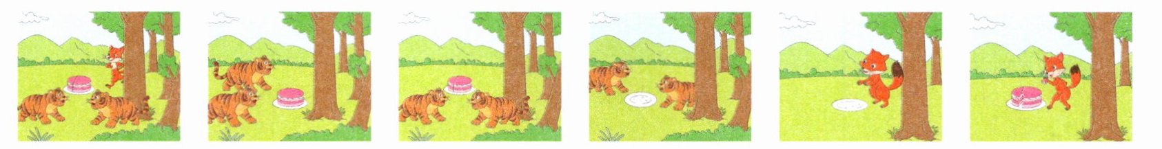 Two hungry tigers find a cake under a tree. They try to divide the cake into two equal(相同的) pieces. But one is big and the other is small. They both want to have the big one, so they begin to quarrel(争吵). A fox comes to them. He's very hungry. He wants to eat the cake. So he says to the tigers, “Let me help you. I can make the two pieces equal.” The tigers are very happy. The fox takes a bite of the big piece. But he eats too much of it. Now the big piece becomes the small one. “Don't worry. Let me try again,” the fox says. Then the fox takes a bite of the big piece. But he eats too much of it. The big one becomes the small one. Finally, the fox eats the whole cake. “It's difficult to divide it equally. I must go now.” The fox quickly runs away. Now, the two tigers are sad and hungry.
