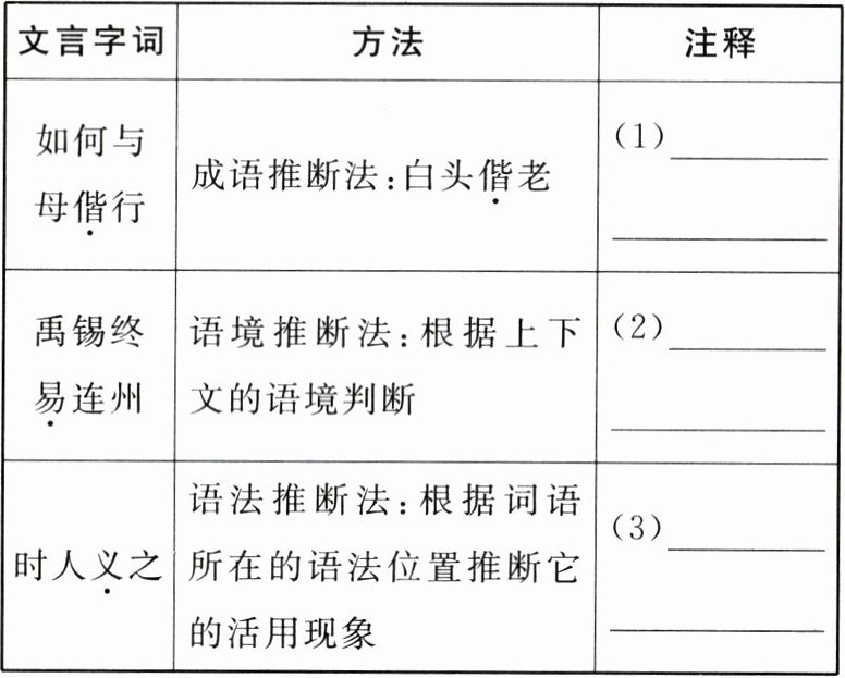 |禹锡终易连州|语境推断法:根据上下文的语境判断|(2)______|